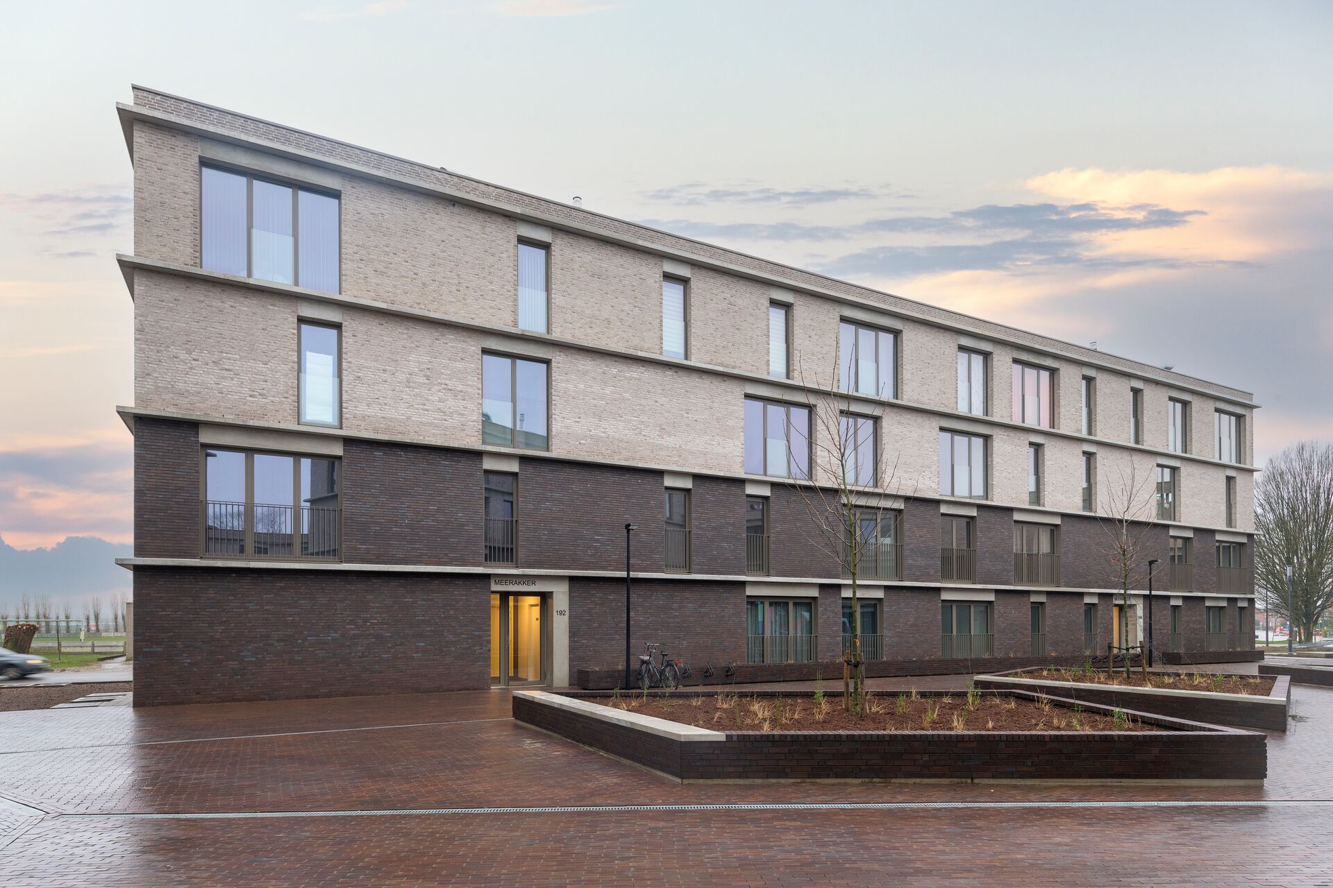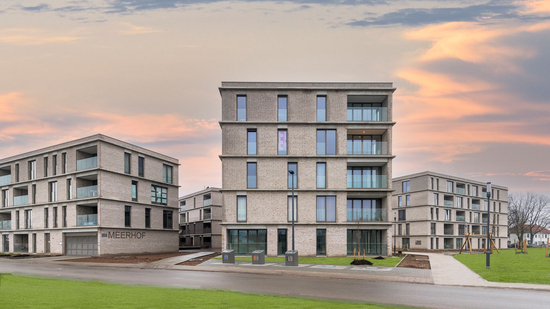 Volkshuisvesting Willebroek liet in een groene omgeving, net buiten het centrum, 98 nieuwe sociale huurappartementen bouwen. Het woonproject is opgebouwd uit 2 clusters met een centrale, gemeenschappelijke buitenkamer. Alle appartementen kijken zowel uit op de groene parkomgeving als op het centrale binnenplein. De gevels worden gekenmerkt door een spel van tweekleurig gevelmetselwerk en architectonisch beton. Parkeren kan in de 2 ondergrondse parkings die rechtstreeks vanuit de appartementen bereikbaar zijn. Het project is duurzaam dankzij de compactheid van de bebouwing, de gunstige oriëntatie van de vertrekken en het gebruik van duurzame materialen.